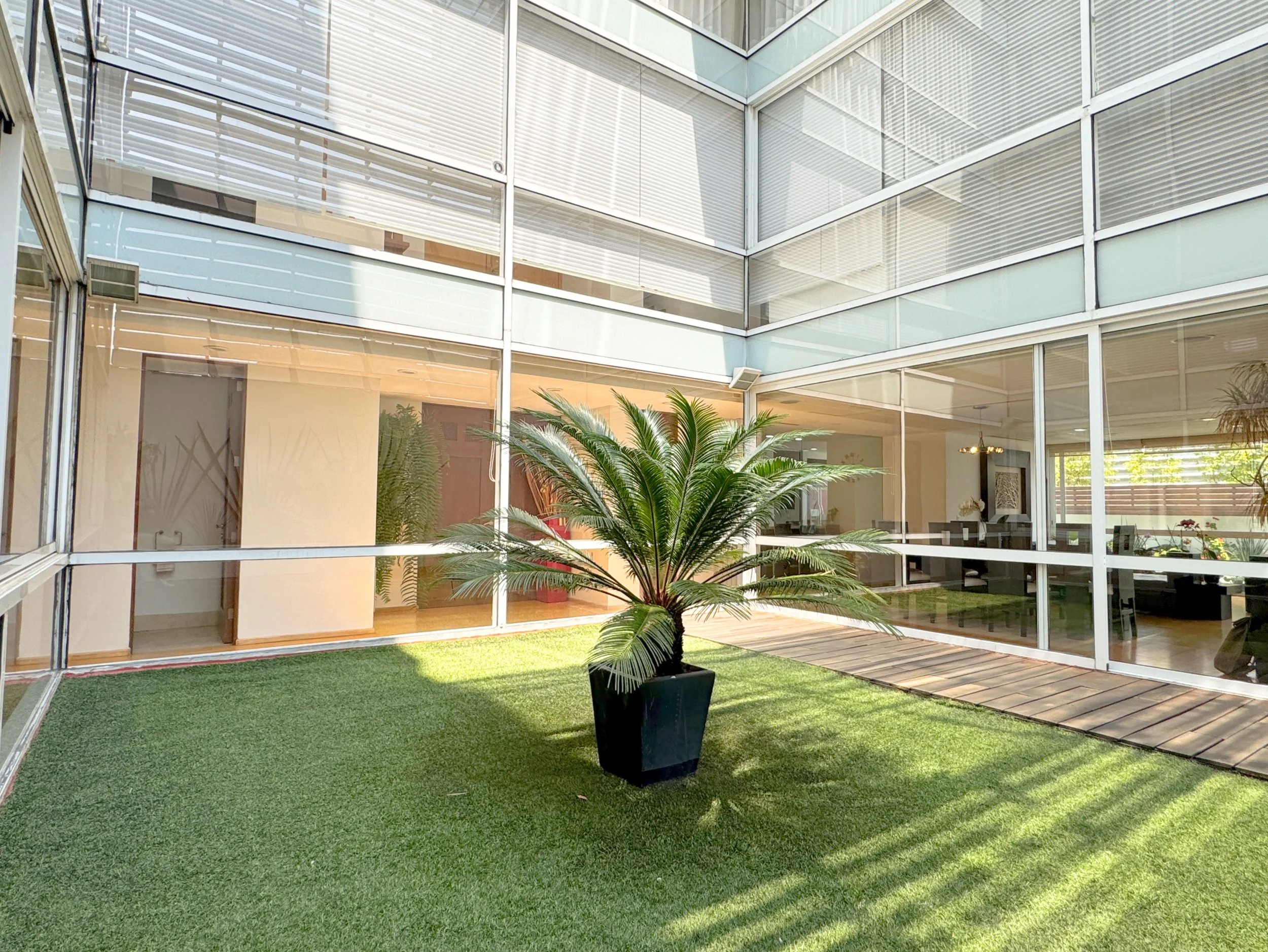 Uno de sus grandes diferenciales es su relación con las áreas verdes: además de sus tres jardines privados, el desarrollo cuenta con amplios jardines comunes y acceso a un espectacular parque de aproximadamente 6,000 m², con juegos infantiles, espejo de agua con lirios y peces, creando un entorno sereno y familiar en medio de la ciudad. Desde el departamento se tiene además puerta de acceso directa al pasillo que conduce a la torre de amenidades, lo que aporta gran comodidad y privacidad.